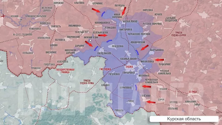 ▪️В Суджанском районе идут уличные бои в Мартыновке. За сутки наша бригада ВДВ полностью смогла очистить здесь две улицы. Есть также продвижение в районе Плехово, со стороны границы с Сумской областью.