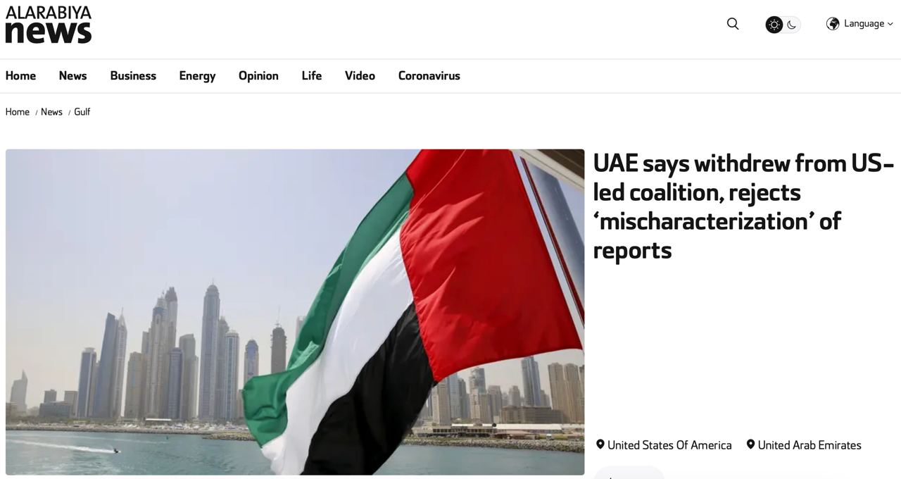 📝 «ОАЭ привержены мирному диалогу и дипломатическим средствам как средствам для достижения общих целей региональной безопасности и стабильности. В результате нашей постоянной оценки эффективности сотрудничества в области безопасности со всеми партнерами ОАЭ два месяца назад мы отказались от участия в Объединённых морских силах», – сообщили в МИД ОАЭ.