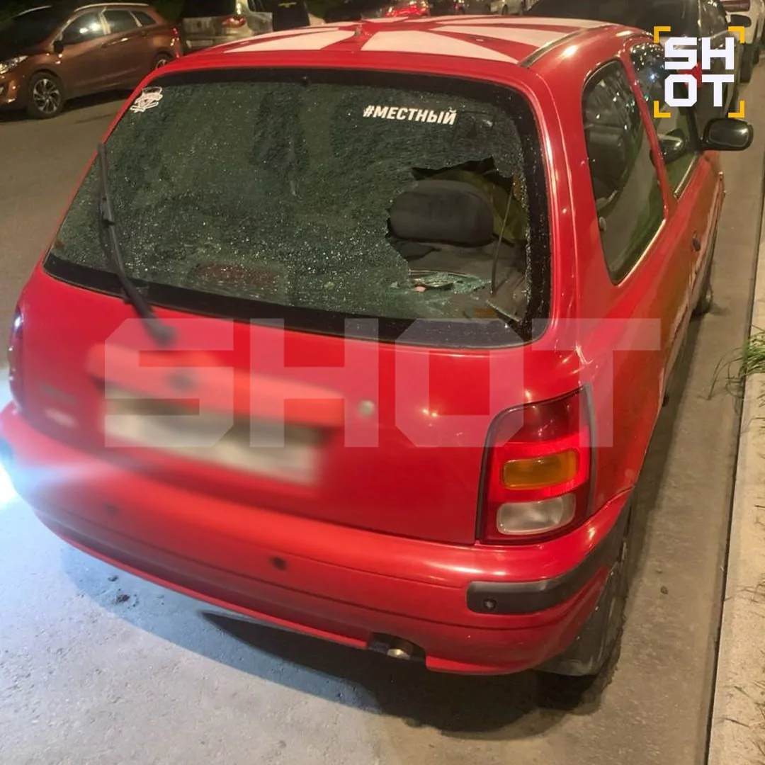 После падения обломков, поражающие элементы дрона повредили машину одного из жителей дома. Между корпусами всё усыпано разбитыми стёклами. Информации о пострадавших нет.