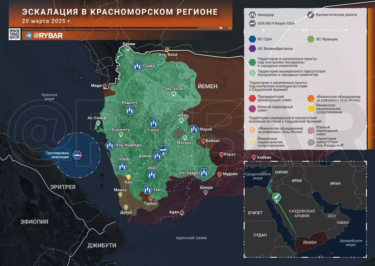 - Кроме того, в «Ансаралле» отчитались о поражении уже 16 по счету американского БЛА MQ-9 Reaper над провинцией Дамар — второго (https://t.me/rybar/68543) с момента вступления в должность Дональда Трампа. Официально в США это пока не подтвердили.