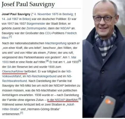 Есть только одна проблема — когда дед Мерца проходил процедуру денацификации в 1947 году, он сам написал что вступил в штурмовики еще в 1933, добровольно.
