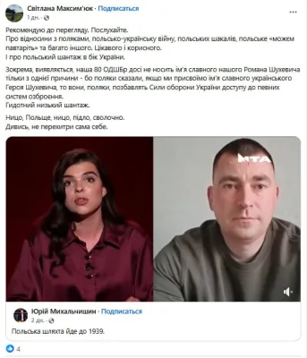 - Националисты 80 одшбр ВСУ вступают в публичный конфликт с командованием бригады, пошедшим на уступки властям Польши и отказавшимся от названия бригады в честь коллаборациониста Р.Шухевича.