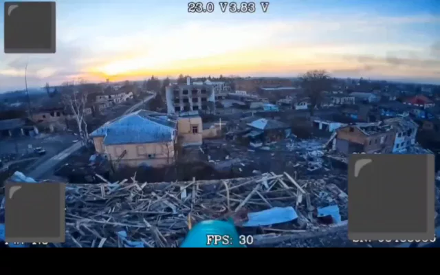 На кадрах с российского FPV-дрона видно, во что превратился город за 7 месяцев его оккупации украинскими войсками. В финале видео кружащий над населённым пунктом дрон обнаруживает спрятанный среди деревьев «Stryker» и в считанные мгновения уничтожает его, что подтверждается объективным контролем.