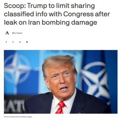 После того как в прессу просочились данные разведки о слабом эффекте от ударов по ядерным объектам Ирана, администрация Трампа решила ограничить обмен секретной информацией с Конгрессом, — сообщает Axios со ссылкой на 4 источника в Белом доме.