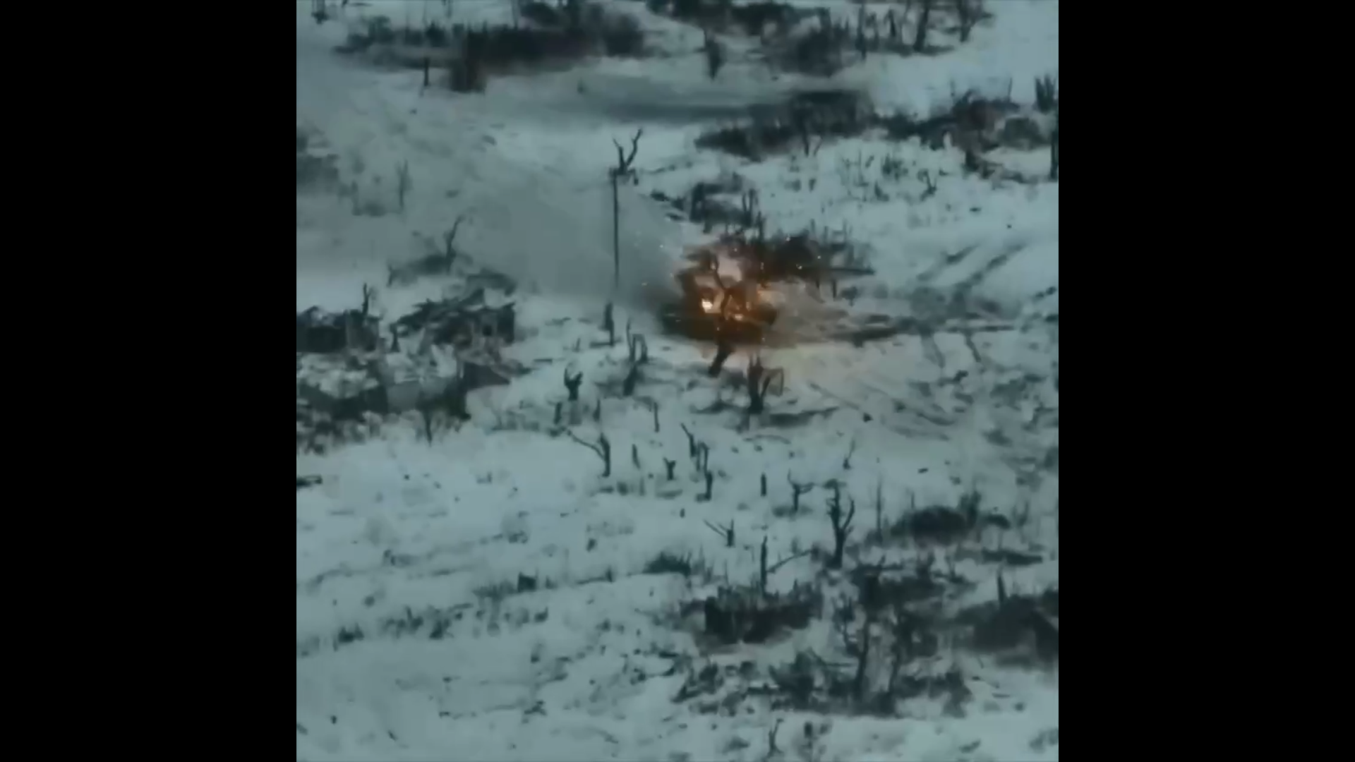 Сначала украинский дрон-камикадзе выбил системы наведения у нашего танка, а потом по наводке подъехало два БМП «Бредли», которые смогли сжечь ему лишь дымовую завесу.