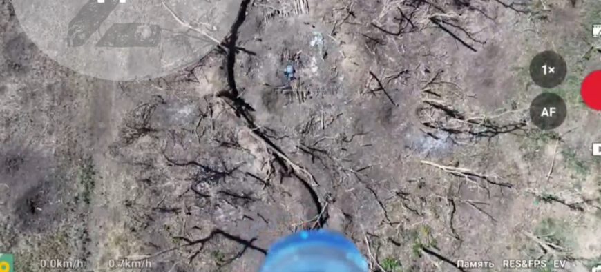 Бойцы отправили воду парням на позиции, куда пройти пешком проблематично, с помощью БПЛА и увидели как вражеский дрон скидывает воги на наших парней. Приняли решение сбить его нестандартным способом и все получилось.