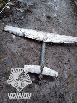 На фото хорошо видно, что беспилотник собран он из излюбленного хохлами материала и палок, скрепленных скотчем.