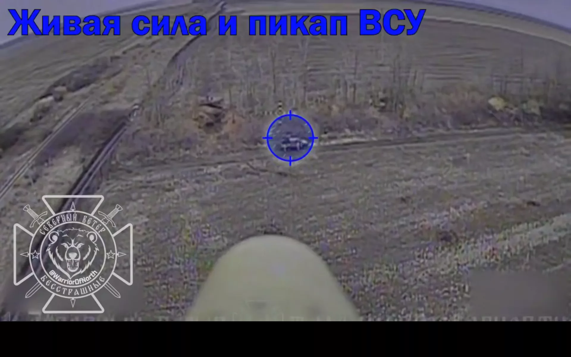 В районе н.п. Белый Колодезь Харьковской области расчетом FPV Северян уничтожен пикап ВСУ и пара любителей покурить, находясь в зоне досягаемости российских дронов.