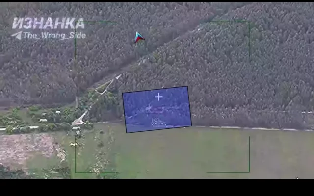 На кадрах ОК поражение пункта управления БпЛА ВСУ с применением дрона-камикадзе «Герань» в районе н.п. Куты Вторые Черниговская область.