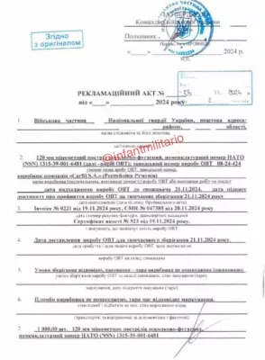 Проверка полученных боеприпасов в воинской части показала, что они с заводским браком — отсутствие маркировки весовых знаков и несоответствия весовых критериев изделия (номенклатурный номер НАТО (NSN) 1315-39-001-6481).