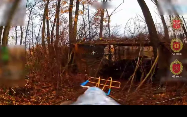 Расчет ФПВ 41 мсп 44 Армейского корпуса уничтожил танк Т-64 ВСУ. С помощью FPV-дронов на оптоволокне были нанесены точные удары по цели, которые вызвавали детонацию боекомплекта с характерным отрывом башни — признак гарантированного вывода техники из строя.