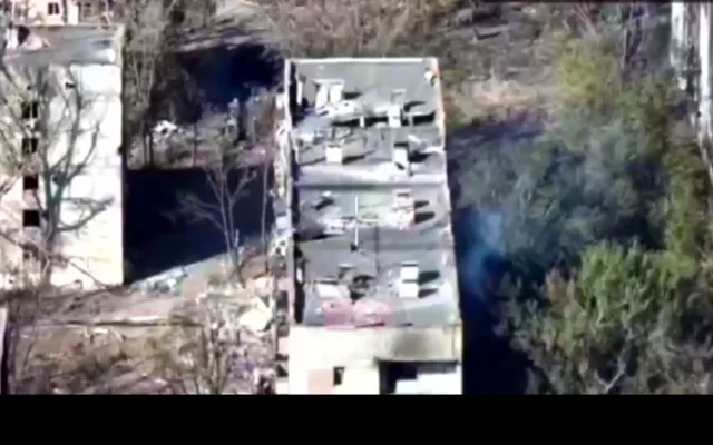 На первом видео штурмовик закидывает подарок в дыру на крыше многоэтажки в Торецке. На втором бойцы отправляют мину в нору с украинскими военными.