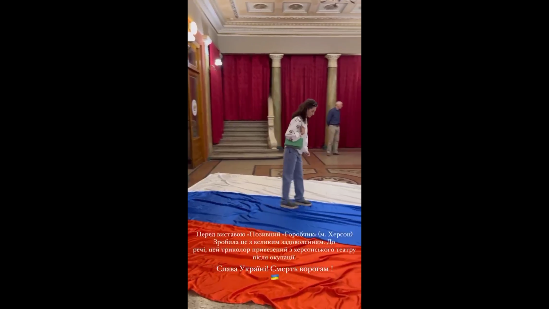 Какая-то бесноватая в вышиванке делает это показушно на камеру.