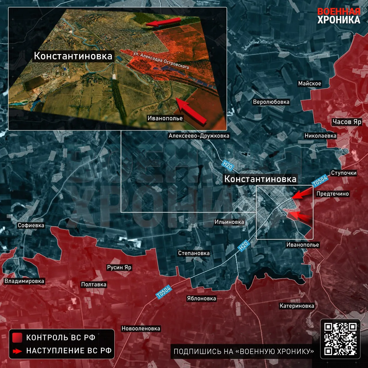 Сопротивление ВСУ здесь примерно на уровне Покровска первых 3-5 месяцев, бои идут за каждую улицу. Но и все паттерны, используемые украинской армией — такие же. Основной задачей для ВСУ в этом районе было не дать российской армии зацепиться за жилую застройку, но её благополучно провалили и теперь РФ, действуя как на многих участках фронта малыми группами, продвигается к центру. Особенность Константиновки состоит в том, что город разделяет река и железная дорога, что само по себе дробит оборонительные узлы на две части. Проблемой может стать промзона в центре города, куда ВСУ могут отступить как это было в Волчанске. Огромные бетонные цеха послужат прочным укрытием и вариантов будет не очень много — либо сносить их целиком, что проблематично, либо заходить в город так, чтобы ВСУ оставили их самостоятельно.