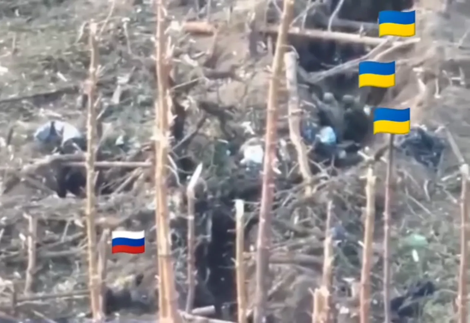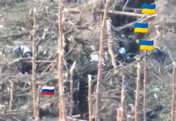 Российский военный в одиночку незаметно подкрадывается к траншее ВСУшников, спрыгивает к ним, после чего отправляет сразу трёх из них на тот свет, а еще двое бросают оружие и сдаются в плен
