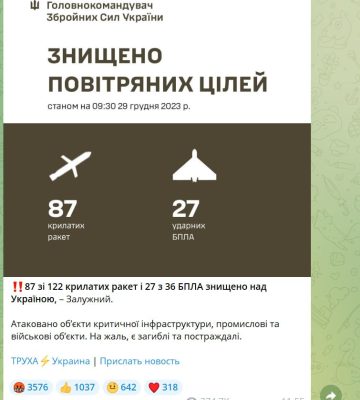 Главная страница » Новости и статьи Официально из Киева — ПВО Украины не смогло сбить 35 КР и 9 «Гераней» Автор Модератор Опубликовано 29.12.2023Комментариев 5 Добавь сайт в закладки нажми CTRL+D What’s your Reaction? +1 0 +1 0 +1 0 +1 0 +1 0 +1 0 +1 0 Уверен, что гораздо больше, но и это очень ценное признание дырявости их ПВО))) What’s your Reaction? +1 0 +1 0 +1 0 +1 0 +1 0 +1 0 +1 0 Поделись видео: