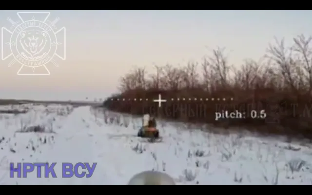 Северяне продолжают планомерно сокращать автопарк противника. На одном из кадров дрон наших бойцов уничтожает вражеский НРТК, который вез боеприпасы на позиции. Снарядам пришлось сдетонировать раньше задуманного…