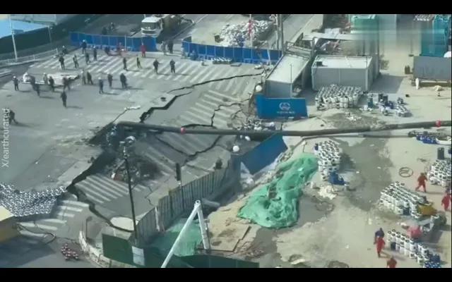 Асфальт провалился на стройплощадке, ЧП могло произойти из-за проводимых там работ, пишут китайские СМИ.