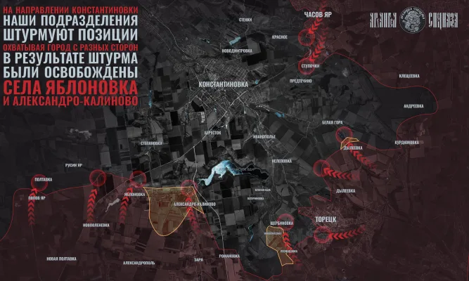 ✍️ Попутно с боями за Часов Яр разворачивается комплексная операция по охвату Константиновки с других участков. Если на направлении Часов Яра все более-менее понятно, то в других районах все еще интереснее.