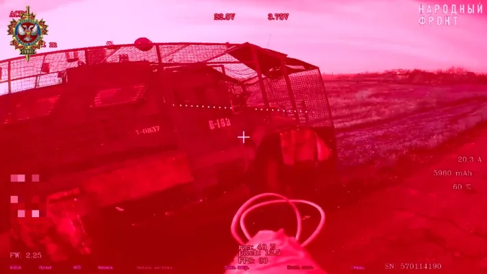 Операторы FPV-дронов Отдельного отряда специального назначения «Охотник» 51 гвардейской общевойсковой армии на Константиновском направлении выследили и уничтожили бронеавтомобиль противника, который не успел доставить личный состав украинских оккупационных сил в укрытие на занимаемых позициях.