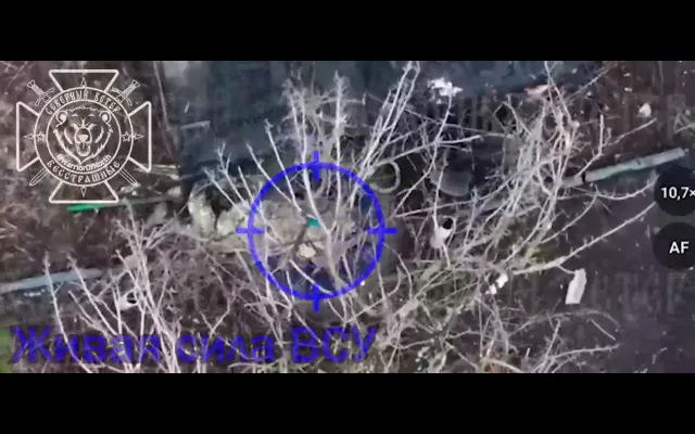 Боец 30 полка обнаружил вражеского военнослужащего, который вместо того, чтобы сдаться решил, что его не заметят. Выключением нижней подсветки хитрец отправлен к Бандере.