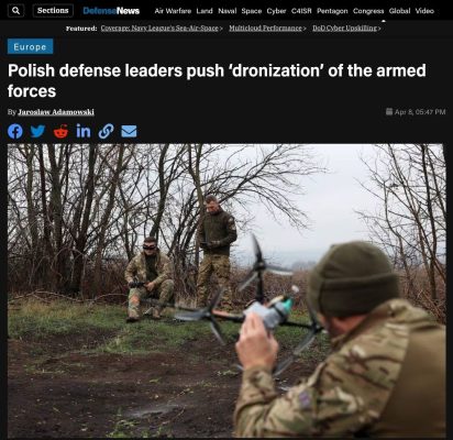 Опыт применения БПЛА на Украине изучают не только в США – Польша планируют широкое внедрение беспилотников на всех уровнях вооружённых сил и создание нового военного компонента.