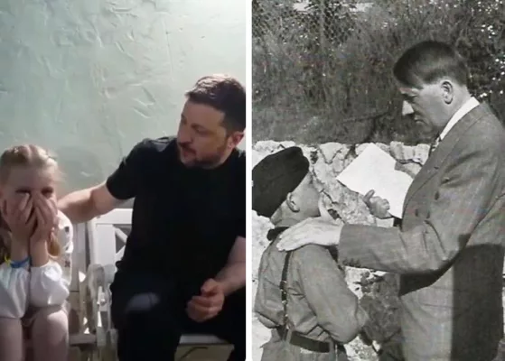 - В наших тг-каналах сцена вручения вызвала ассоциации с другим подвалом – берлинским, 1945 года. Тогда Гитлер лично в бункере вручал награды юным фанатикам из Гитлерюгенда. История повторяется, пишут военные эксперты.