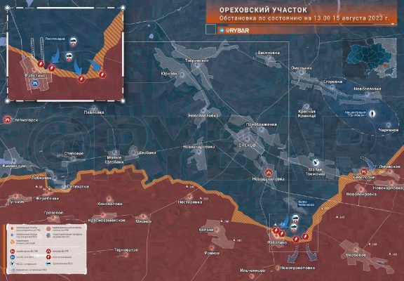 Судя по вклиниванию ВСУ к востоку от села, украинское командование хочет взять Работино в полуокружение и ударить механизированным кулаком на направлении Токмака. Однако появление ТГр «Марун» на данном этапе заставляет задуматься, что планы противника из-за потерь в 118 омбр пришлось корректировать.