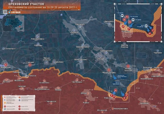 - На северной окраине Работино по-прежнему действуют пехотные группы, которые пытаются закрепиться в селе. По ним активно отрабатывает российская артиллерия, что подтверждает нахождение этой части Работино в серой зоне.