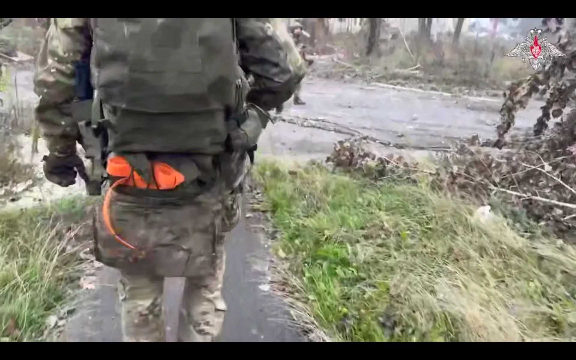 На кадрах бойцы группировки войск «Центр» свободно перемещаются по освобождённому микрорайону Шахтёрский города Красноармейска Донецкой Народной Республики.
