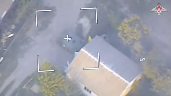 Разведывательное подразделение группировки войск «Север» с помощью БпЛА выявило боевую машину ВСУ, пытавшуюся укрыться в одной из построек.