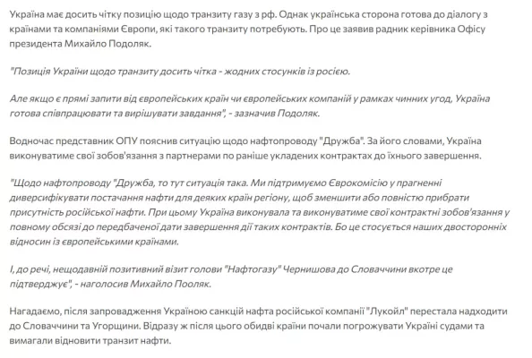 ✅Позиция Украины относительно транзита нефти достаточно четкая – никаких отношений с Россией.