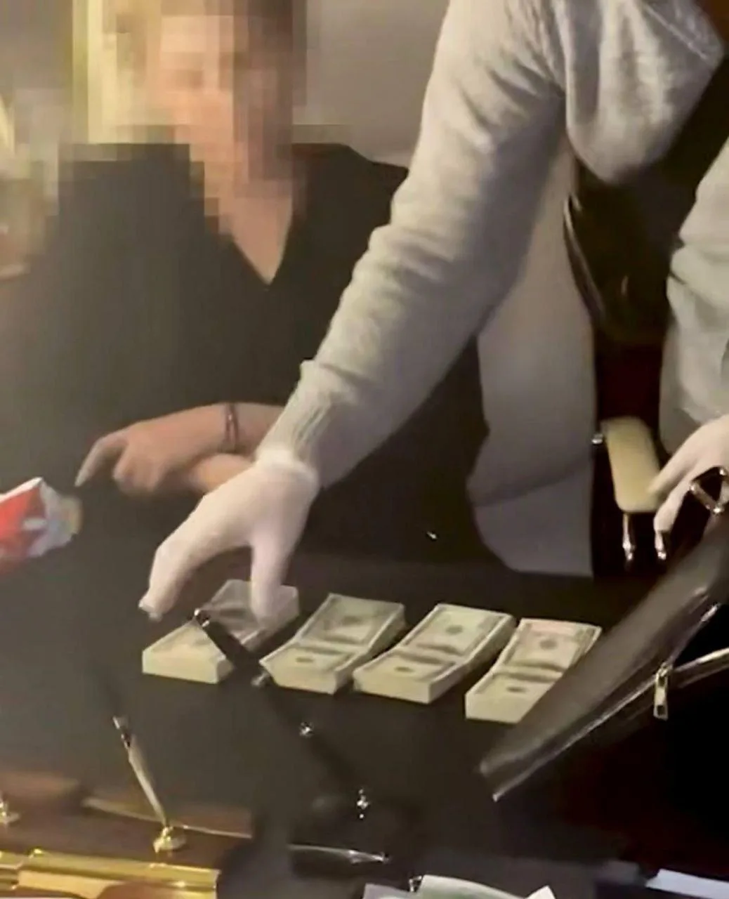 Украинские паблики постят кадры обысков в офисе партии «Батькивщина». Саму Тимошенко зачем-то «замазали». На видео попал момент официального предъявления ей обвинения, а также то, как силовики высыпают пачки долларовых купюр из пакета.
