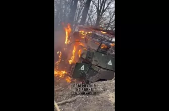 Горящая САУ М109 ВСУ в результате прилета FPV-камикадзе. Сумская область