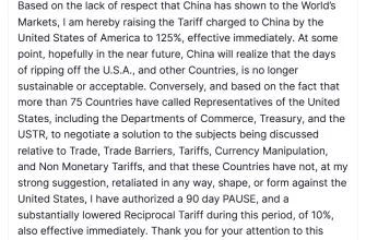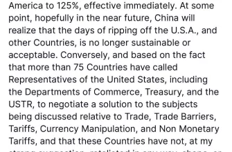 «На основании неуважения Китая»: Трамп повышает пошлины до 125%
