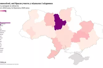 Инфографика количества терактов/поджогов/подрывов по областям Украины в 2022-2025 гг