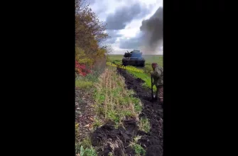 Уничтожение всушной 122-мм САУ 2С1 «Гвоздика» ударом оптоволоконного дрона в крышу башни