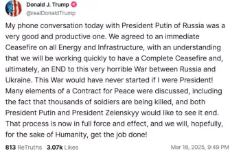 Трамп подтвердил договорённость о прекращении атак на энергетическую инфраструктуру
