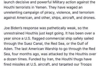 Трамп распорядился нанести удары по позициям хуситов в Йемене. Он угрожает им “адом”, если они уже сегодня не остановят атаки на суда в Красном море и Аденском заливе