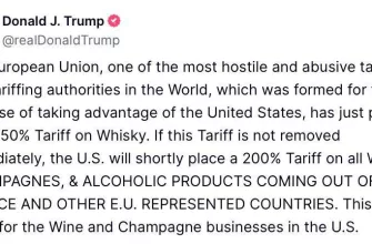 Трамп объявил ЕС «алкогольную войну»: грозит пошлинами 200% на вино и шампанское