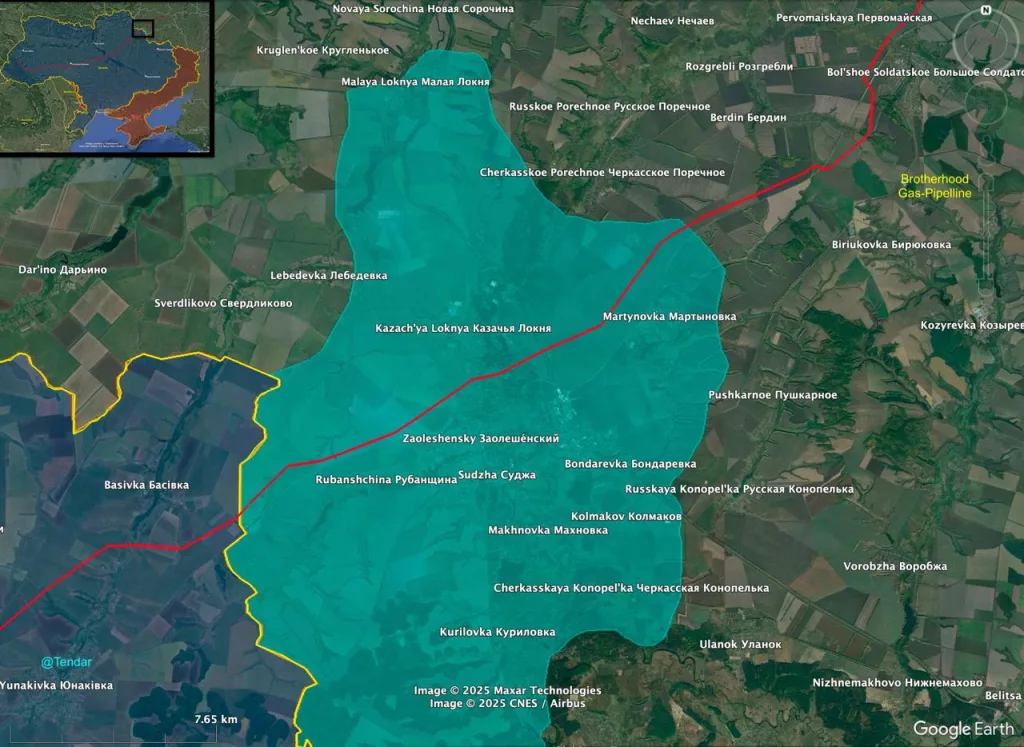 Самое интересное с бывшим газопроводом через Суджу, так это то, что нитка тянется до границы с Украиной и пересекая её тянется вплоть до Юнаковки
