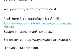 «Замолчи, маленький человек. Вы платите лишь малую часть стоимости. И замены Starlink нет», — Маск ответил премьеру Польши Дональду Туску