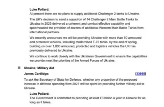 Британцы не будут больше передавать Украине свои танки «челенджер» — сообщили вчера на слушаниях в парламенте