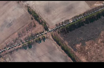 Фрагмент той самой 60 километровой колонны ВС РФ, растянувшейся от окраин границы с Белоруссией до аэродрома Гостомель под Киевом, февраль 2022 года