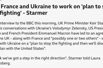 Великобритания и Франция вместе с властями в Киеве начнут работать над планом по прекращению боевых действий на Украине, а затем представят его США, — премьер-министр Великобритании Кир Стармер в интервью BBC