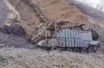 Кустарный тяжелый БТР российский армии, спроектированный на базе танка Т-80БВ, застрял в овраге где-то в зоне СВО