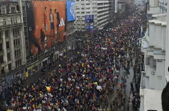 Колонна протестующих растянулась вдоль одной из центральных улиц Бухареста
