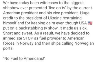 Норвежская компания по производству морского топлива Haltbakk Bunkers — о прекращении заправки судов ВМС США