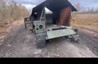 Армейский внедорожник HMMWV ВСУ сгорел на работе