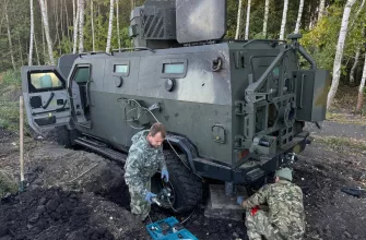 Иксоводы из 16й бригады СпН уничтожили «Ланцетом» всушный бронеавтомобиль который зачем-то остановился посреди переправы через р.Оскол в Харьковской области